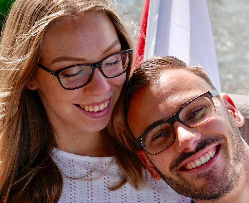 Tijdens die bewuste vaarvakantie zaten ze heerlijk op de loungebank van elkaar te genieten. Marco tegen Lindy aan en Lindy liefdevol en zorgzaam haar armen om hem heen. Een heel intiem moment dat ik heb mogen meemaken. Intiem en liefdevol. Precies wat zij in hun relatie uitstralen.