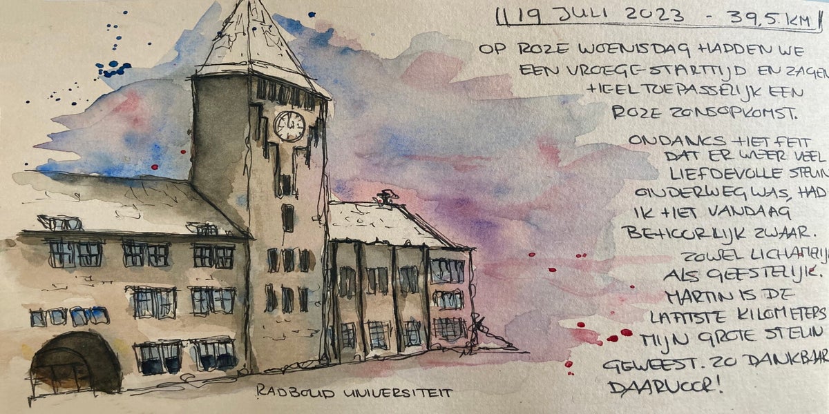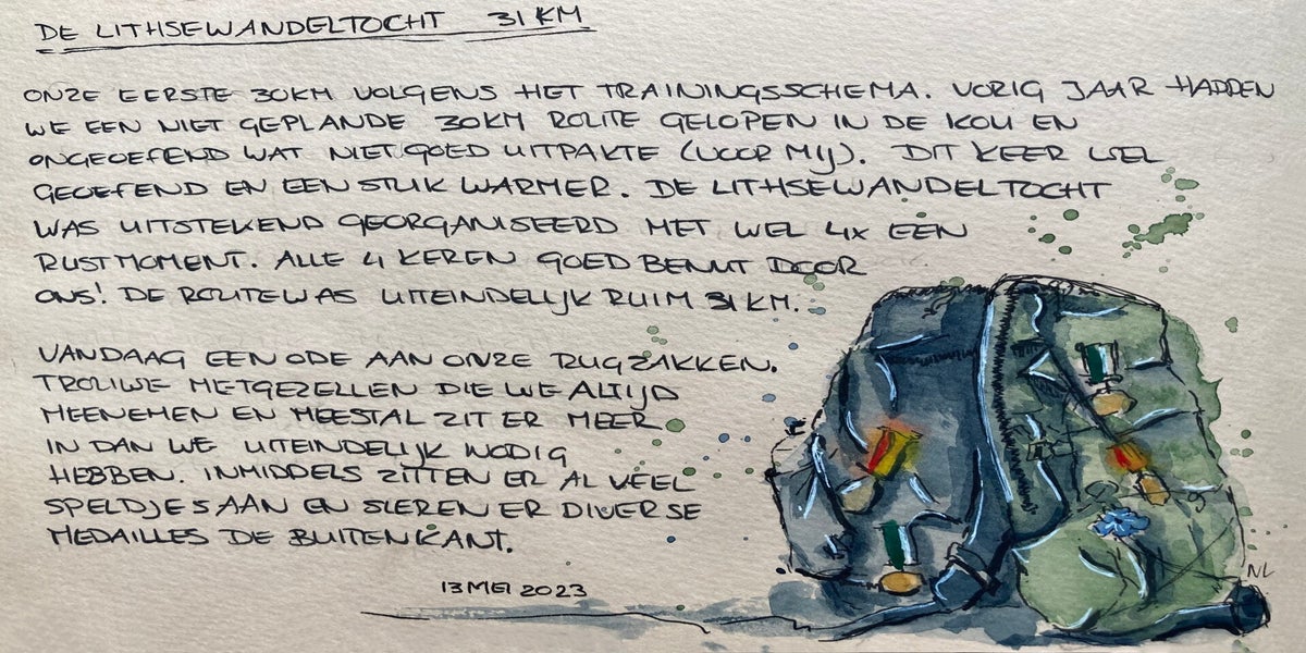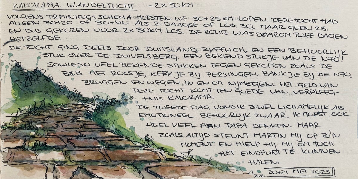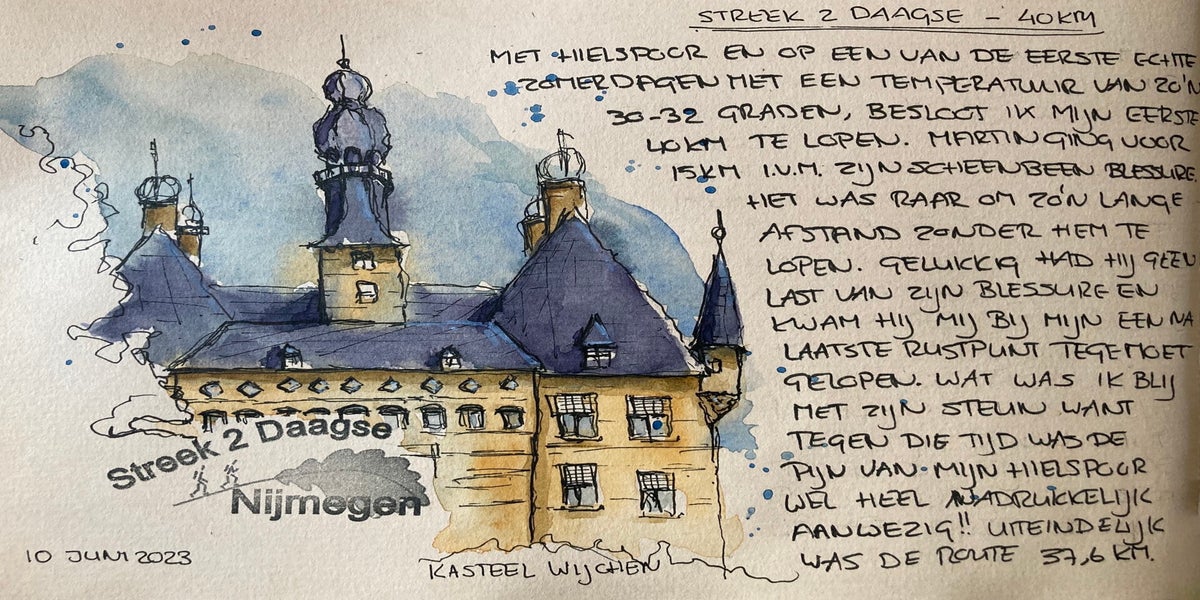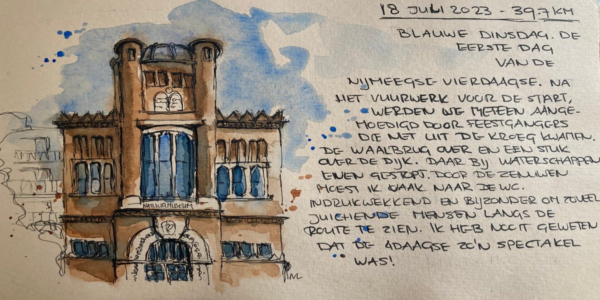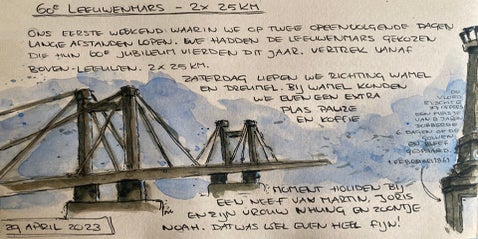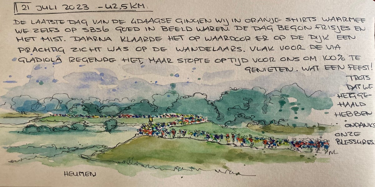 Toen ik besloot om mee te doen aan de Vierdaagse van Nijmegen, wist ik één ding zeker: ik wilde deze ervaring vastleggen. Niet met foto's, maar met schetsen.