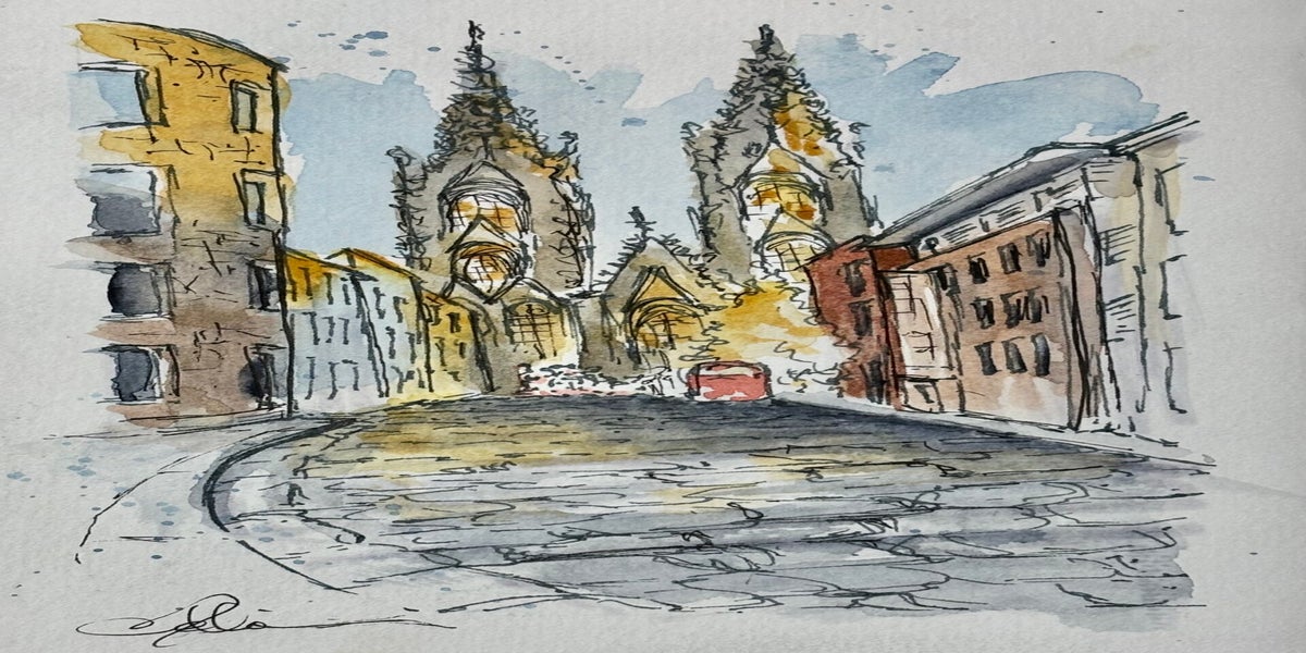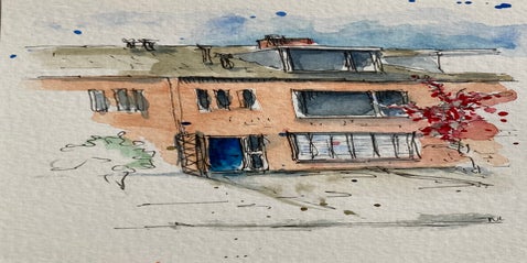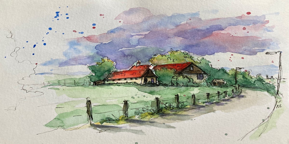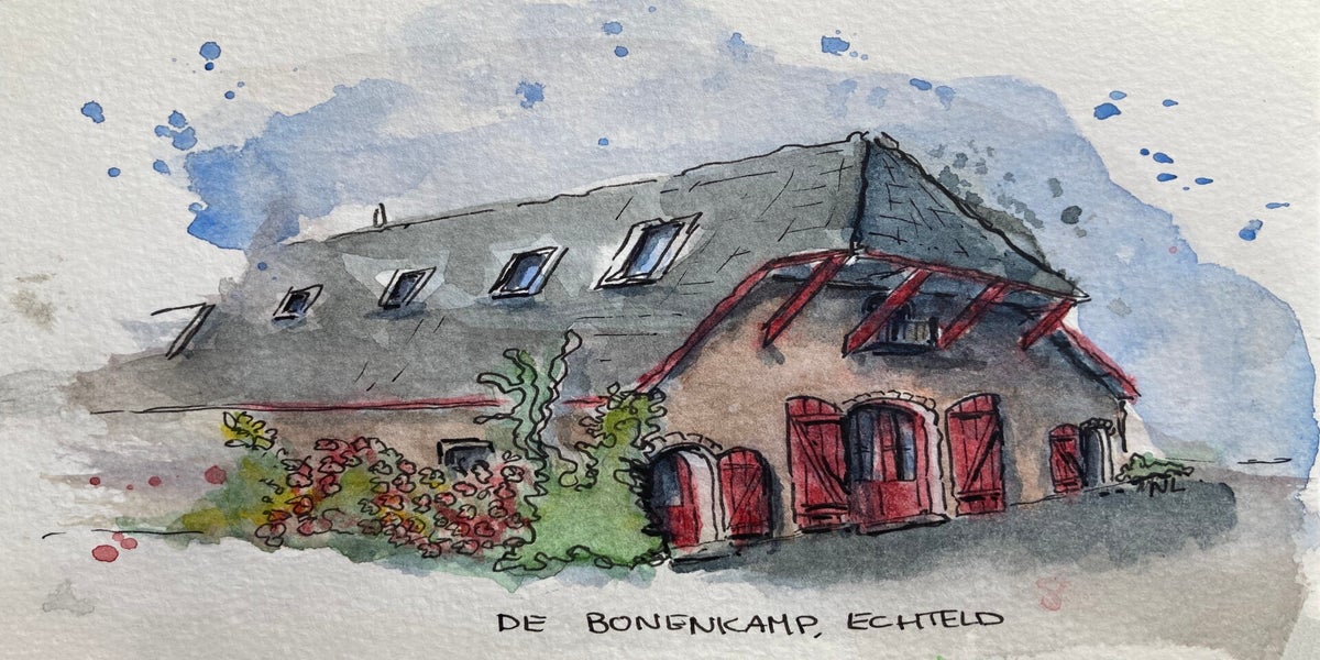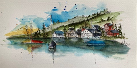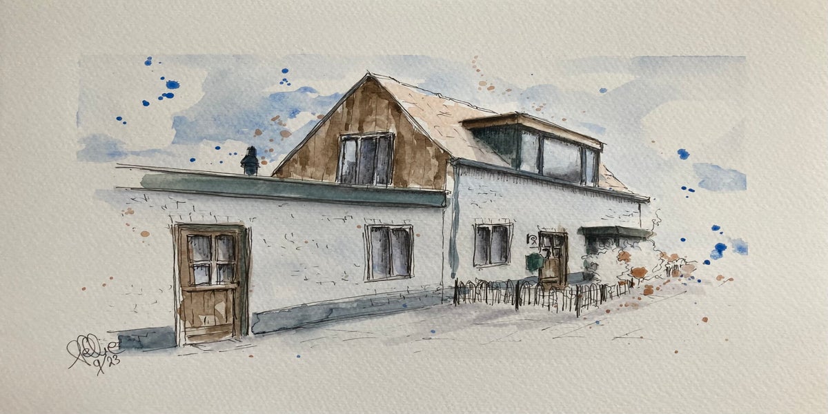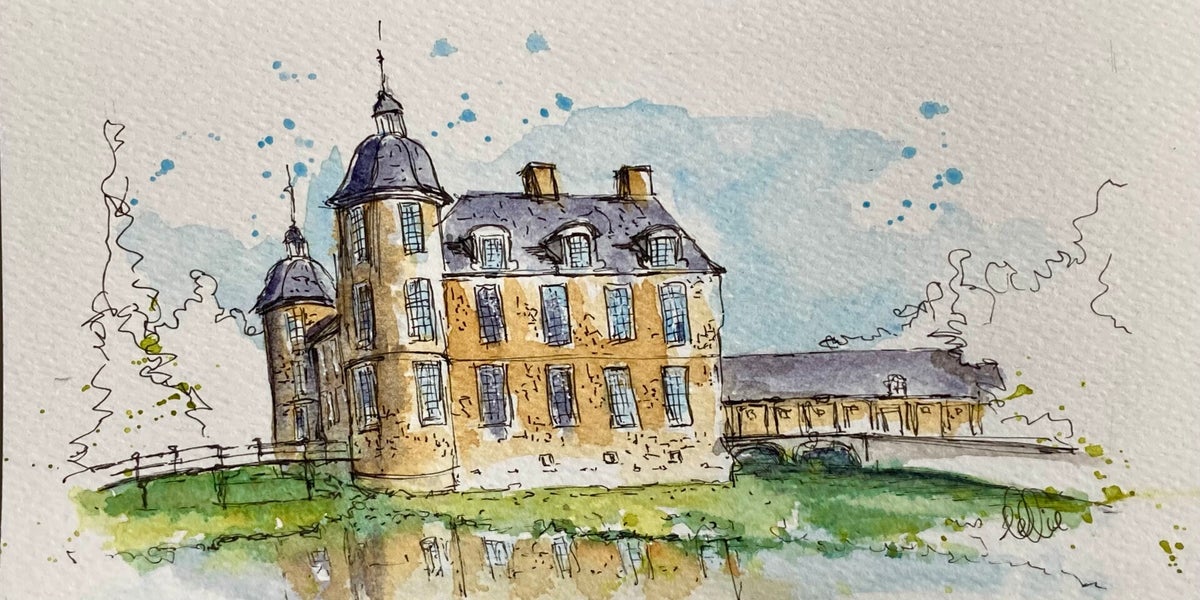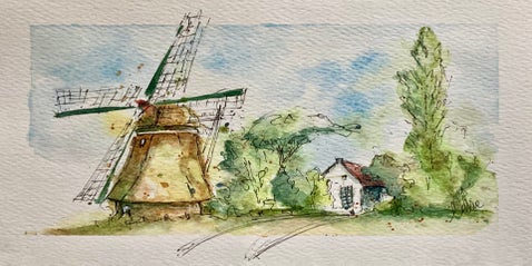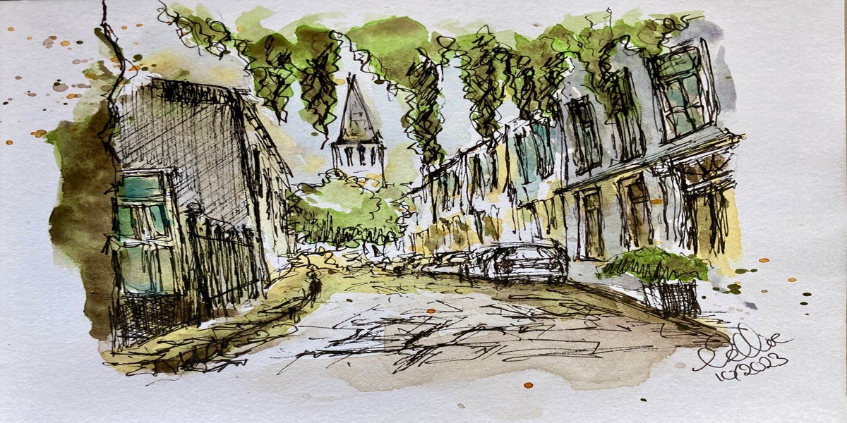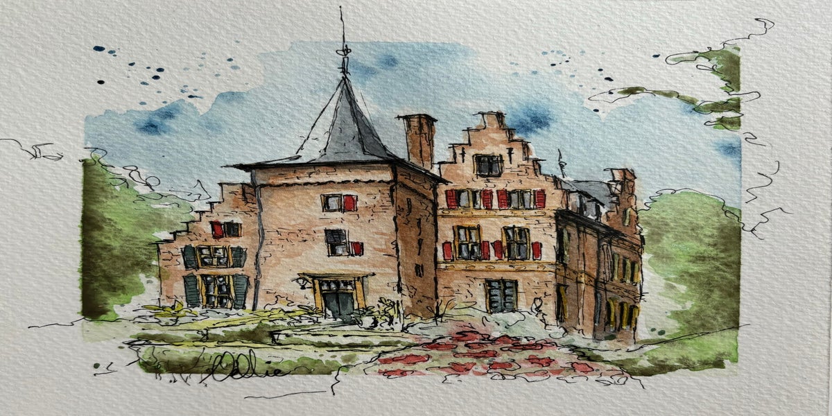 Inmiddels ben ik volop aan het verkennen: huizen, steden, wandelingen… en soms zelfs wijn. Alles wat me raakt, probeer ik in kleur en lijn te vangen. Hieronder zie je een selectie van mijn aquarelwerk.