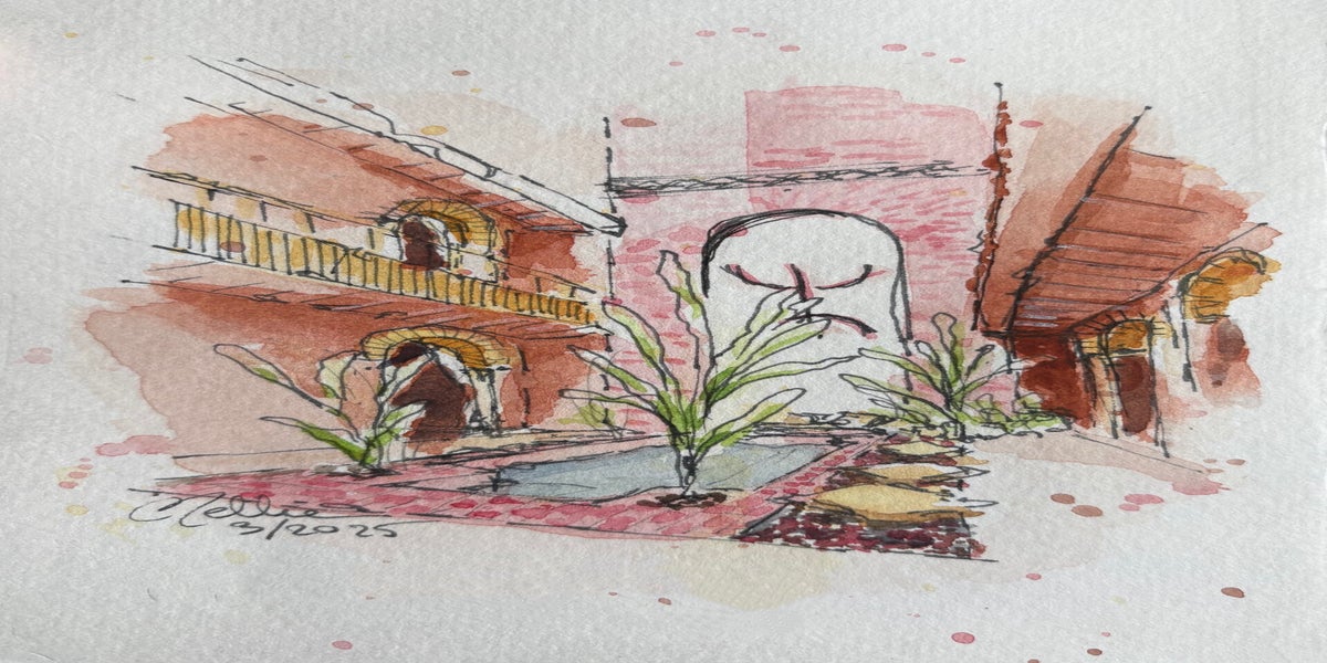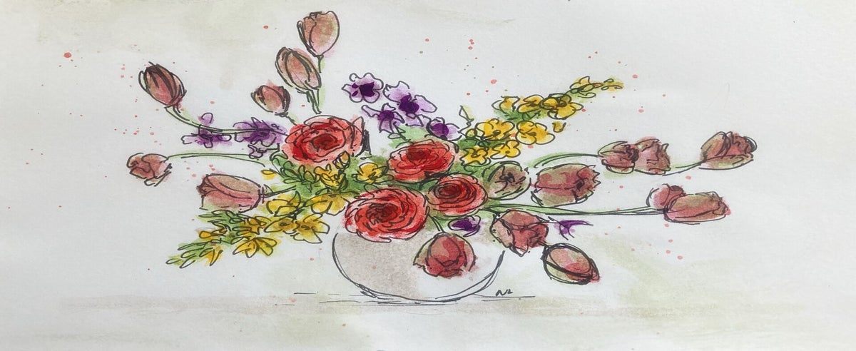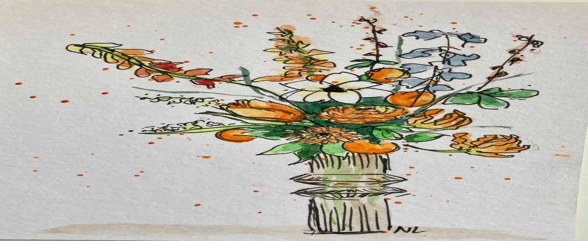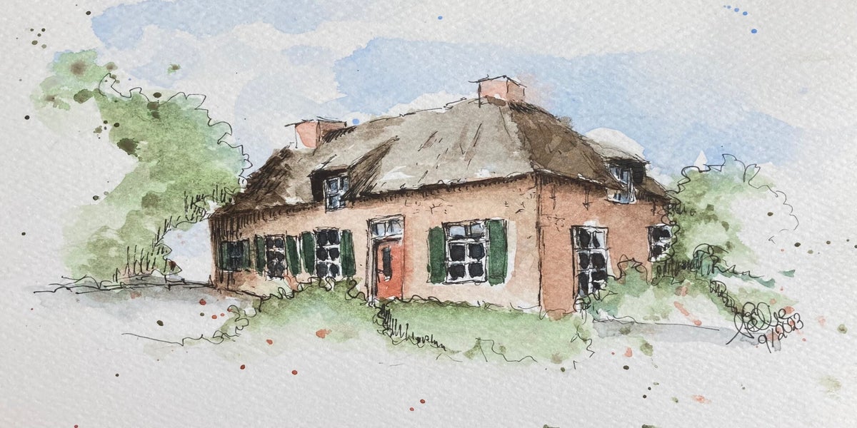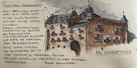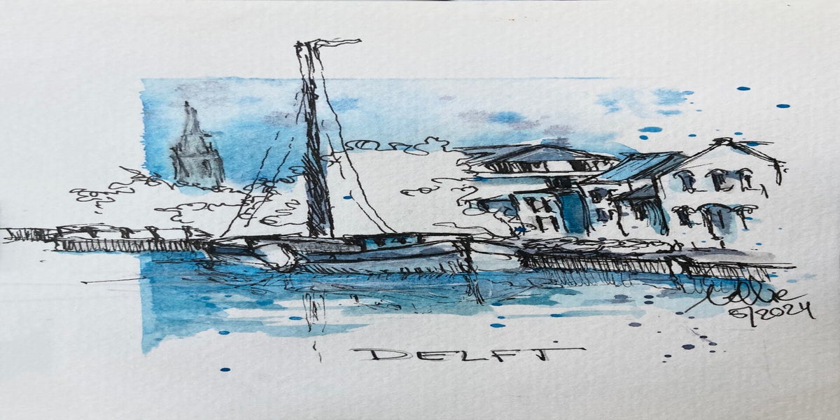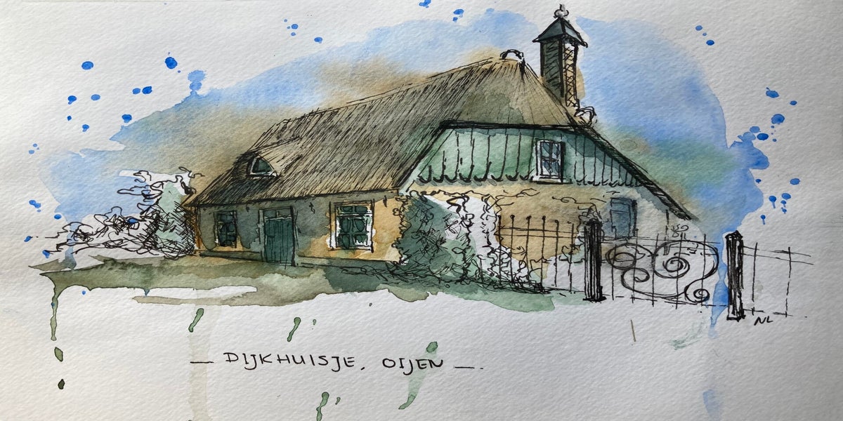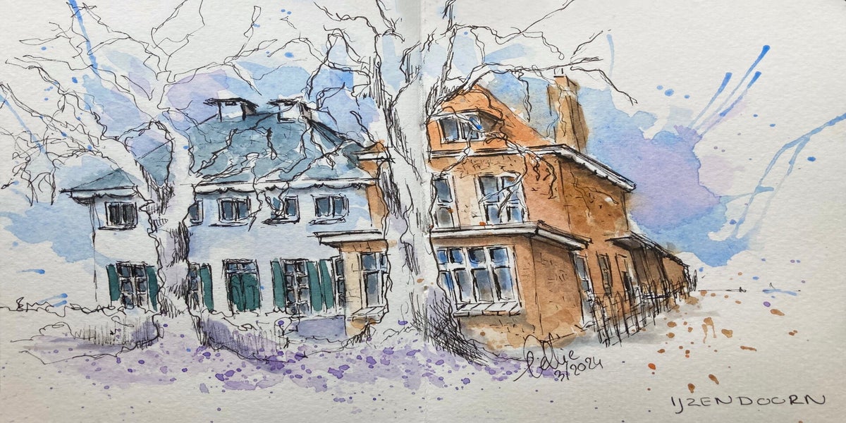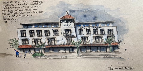 Wat begon met bloemen en huisportretjes, groeide uit tot een liefde voor Urban Sketching: het vastleggen van het dagelijkse leven, gebouwen en plekken – vaak ter plekke, soms ook aan de hand van een foto. Voor mij draait het niet om de regel of de plek, maar om het moment en het verhaal dat ik wil vangen.