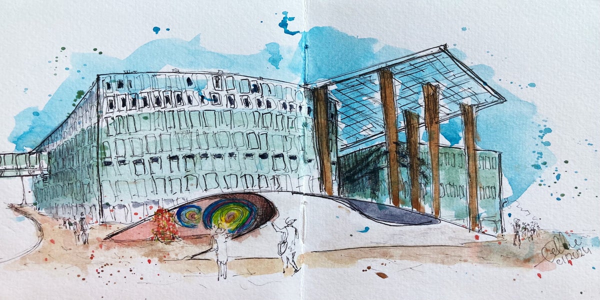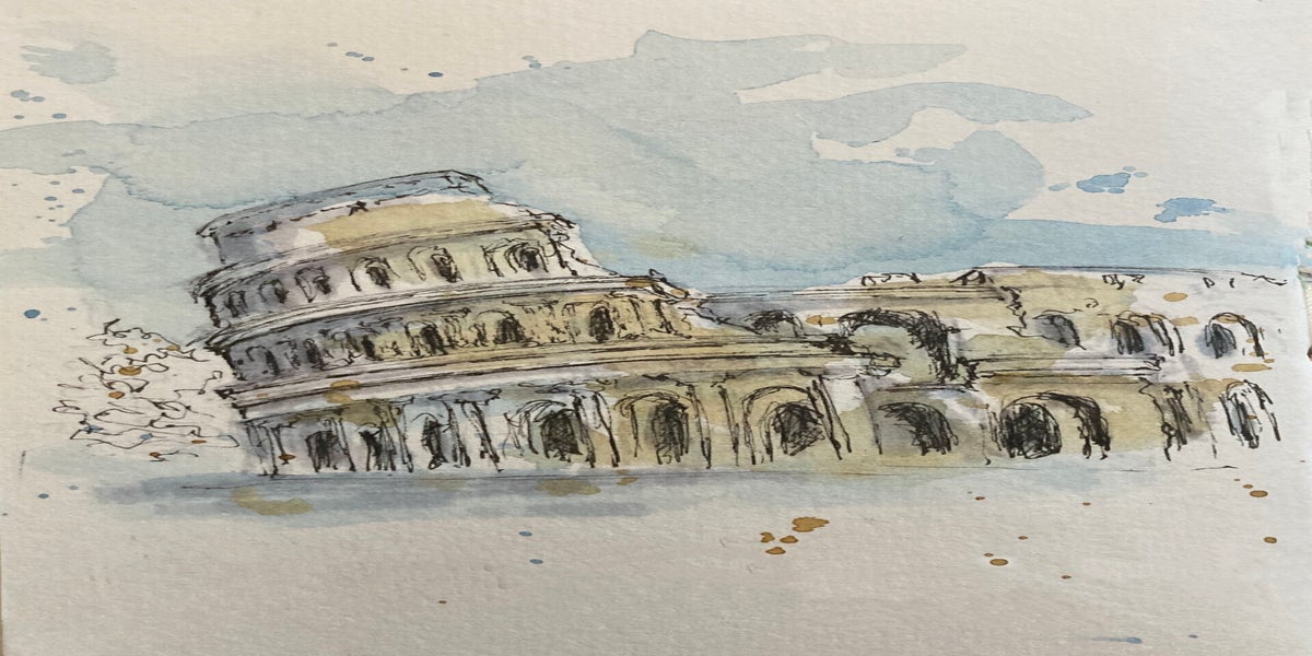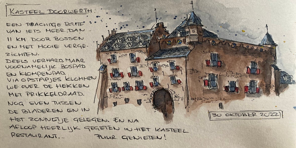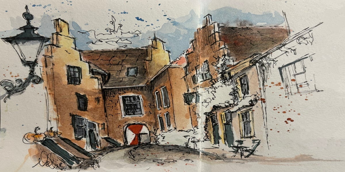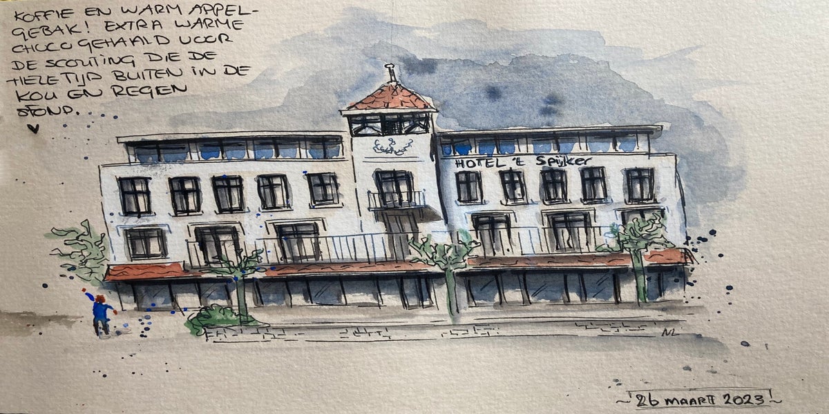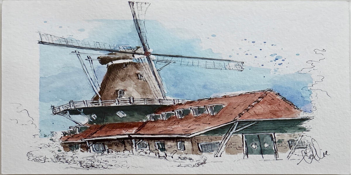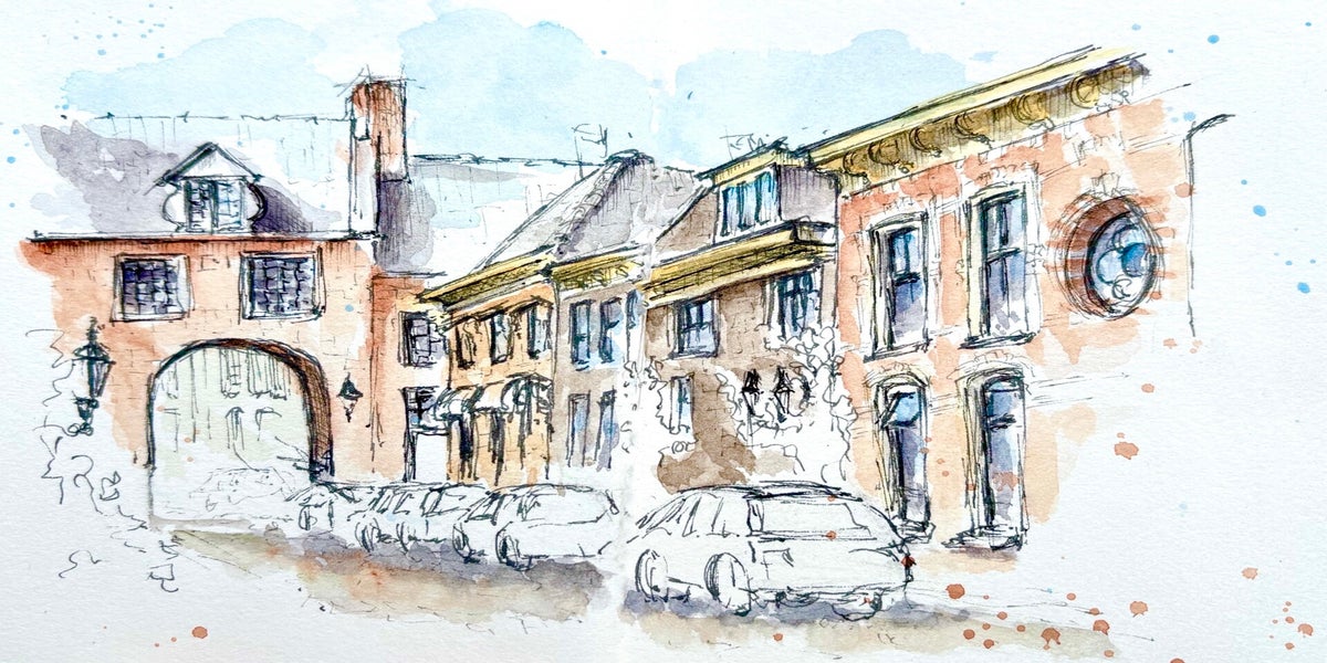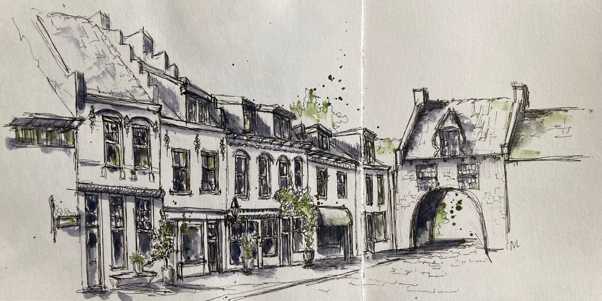 Met pen en aquarel de wereld om me heen vastleggen – dat is wat ik zo mooi vind aan urban sketching. Niet te veel nadenken, gewoon kijken, tekenen en vangen wat er op dat moment is.
